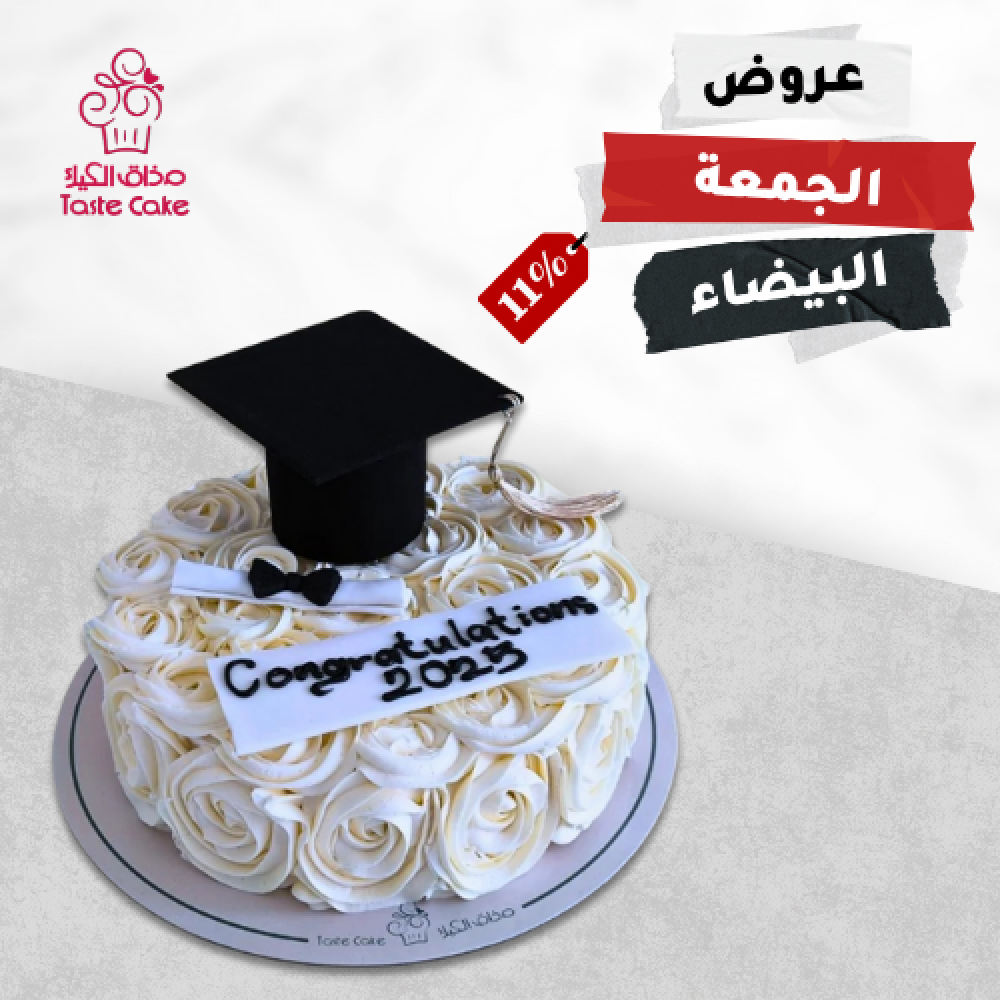 احتفل بلحظة التخرج بأناقة وفخامة مع كيكة روز التخرج من متجر مذاق الكيك. تمتزج في هذه الكيكة الفريدة بين روعة التصميم ولذة الطعم، حيث تتواجد زهور الروز الرقيقة على سطح الكيكة لتضفي لمسة من الجمال والأناقة. بجودتها العالية وتصميمها الأنيق، تعتبر كيكة روز التخرج خيارًا مثاليًا لإضافة لمسة خاصة ومميزة لحفل التخرج الخاص بك. احتفل بنجاحك بأناقة واستمتع بتذوق طعم النجاح مع كيكة روز التخرج من مذاق الكيك.