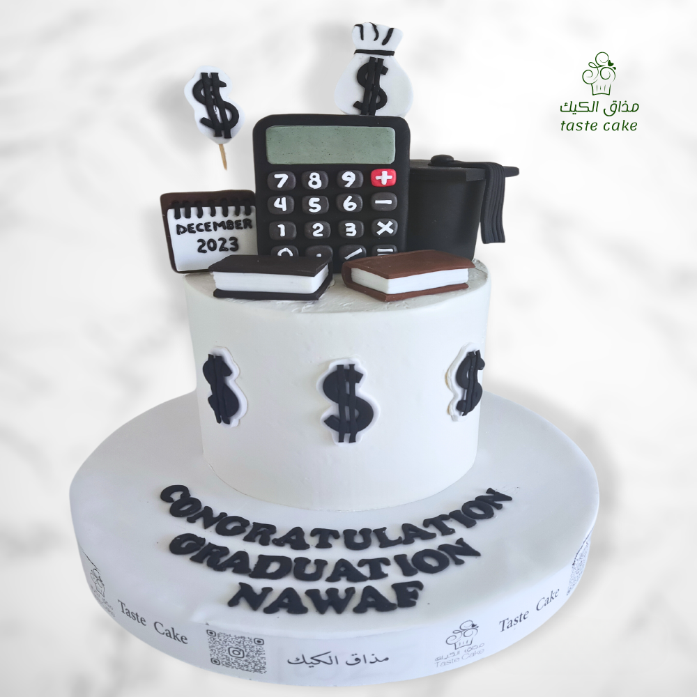 كيكة تخرج فريدة مصممة بدقة تجسد لحظة التخرج مع قبعة التخرج وشهادة التفوق. احتفل بنجاحك مع مذاق الكيك واحتفظ بذكرى هذه المناسبة الخاصة.