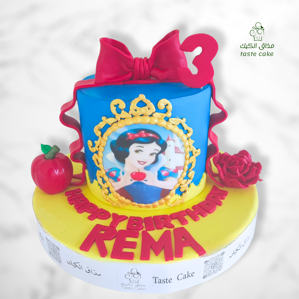 كيكة سنووايت والاقزام مع مجسم التفاحه بالوان فريدة مصممة بدقة تجسد لحظات عيد الميلاد الفريده مع مذاق الكيك واحتفظ بذكرى هذه المناسبة الخاصة.